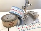 定規のマスキングテープを天板に貼っておくとステッチ定規の位置調整にとても役立ちます。