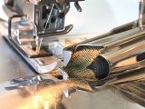 カットしたバインダー布をカバーステッチミシンにセットします。