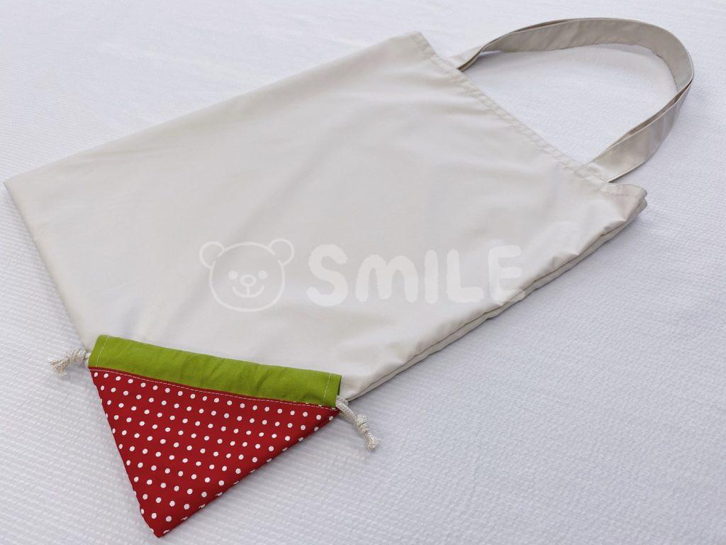 本体生地を丸めて収納出来る巾着の大きさを考えてからの制作をおすすめ致します。