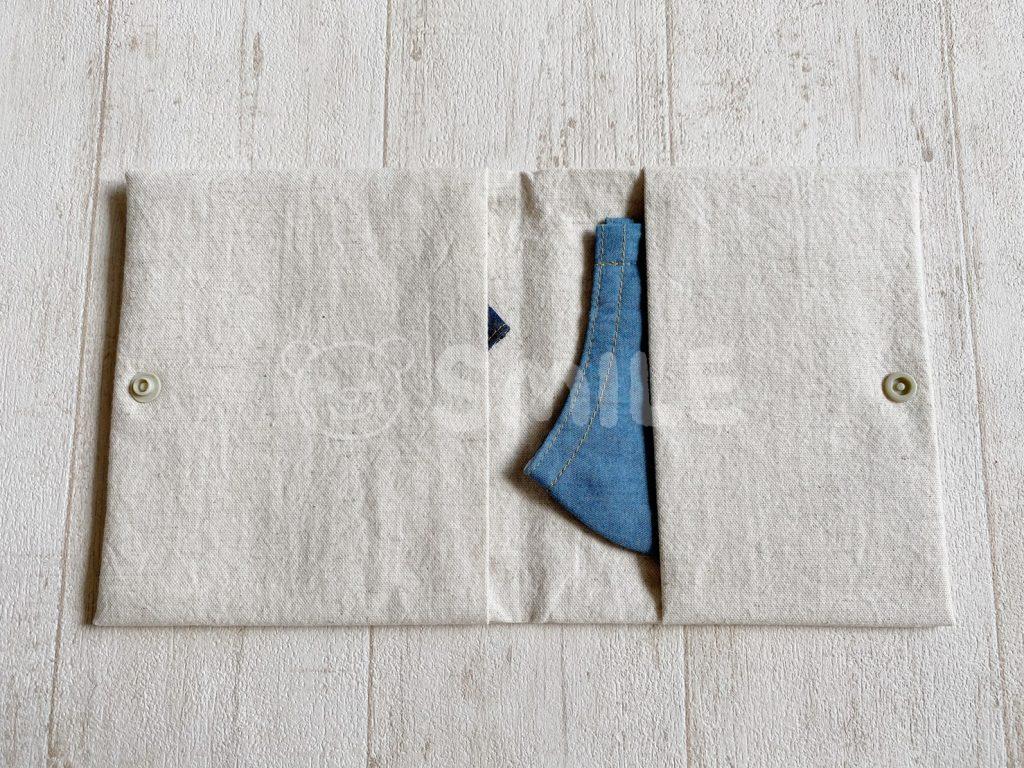 サイズを変えれば使い捨てマスクにも、プリーツマスクにも、通帳ケースなどいろいろと使えそうです。