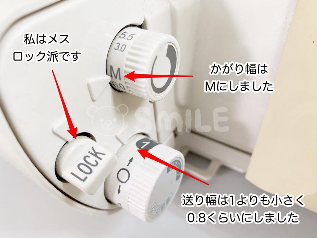 巻きロックは少し生地端を折り曲げながらルーバー糸で包み込むようにして仕上げていくので、【M】が最適なのかもしれません。