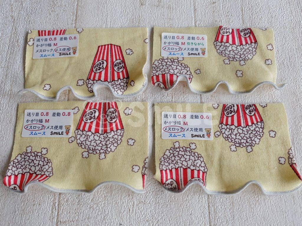 糸調子・送り幅・縫い幅・差動・メスの有無などの縫い比べ