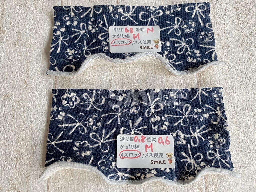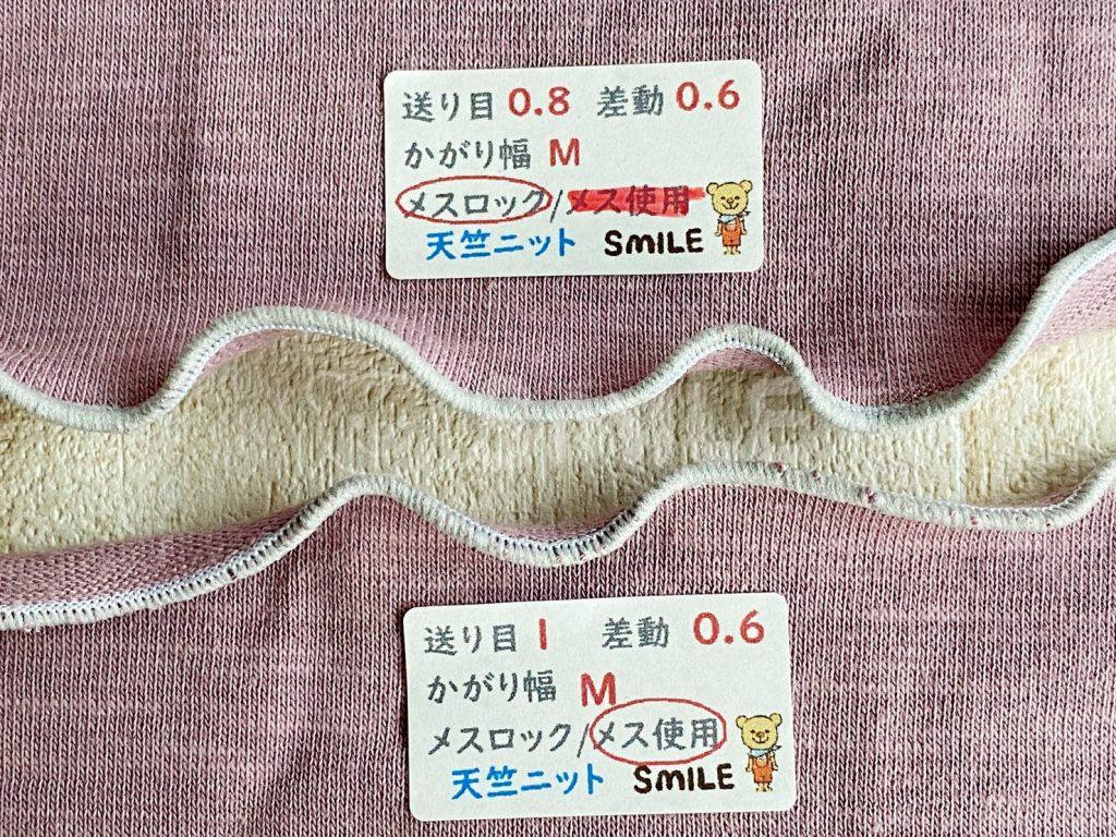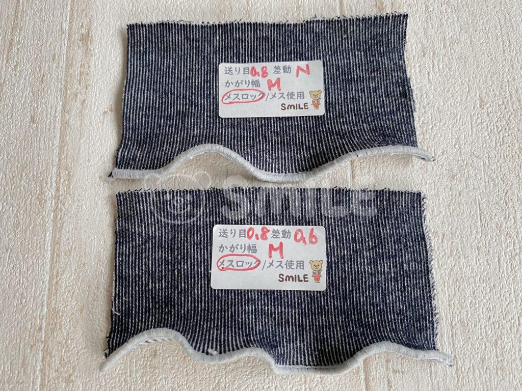 メスロックの場合、メスを使ってカットする場合それぞれ縫い比べも行いました。