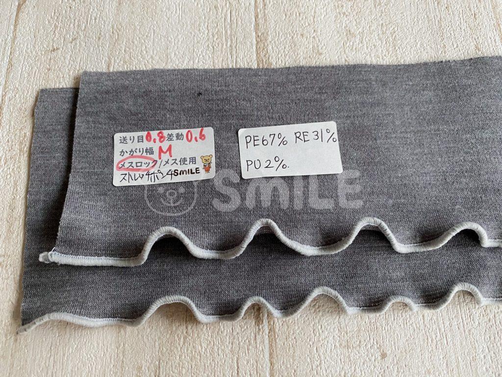 生地が柔らかいので少しふにゃっとした印象ですが、スパンフライスもPU入りなので、巻きロックした後に引っ張って一度伸ばすことで綺麗なウエーブになりました。