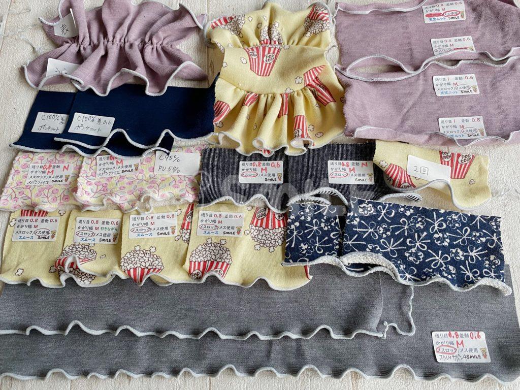 今回色々な生地と数値で縫い比べてみました。