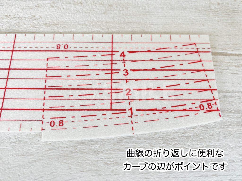 このアイロン定規を使うと、曲線の折り返しも綺麗に手早く出来るのでおすすめです。