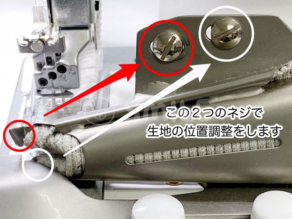 まずバインダー布の1~2ミリ内側に左針のステッチが来るように、バインダー金具の固定ネジである程度調整をしておきましょう。
